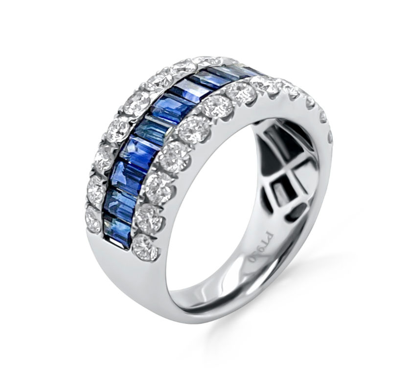 Diamond ring set with round diamonds and 3 baguette diamonds